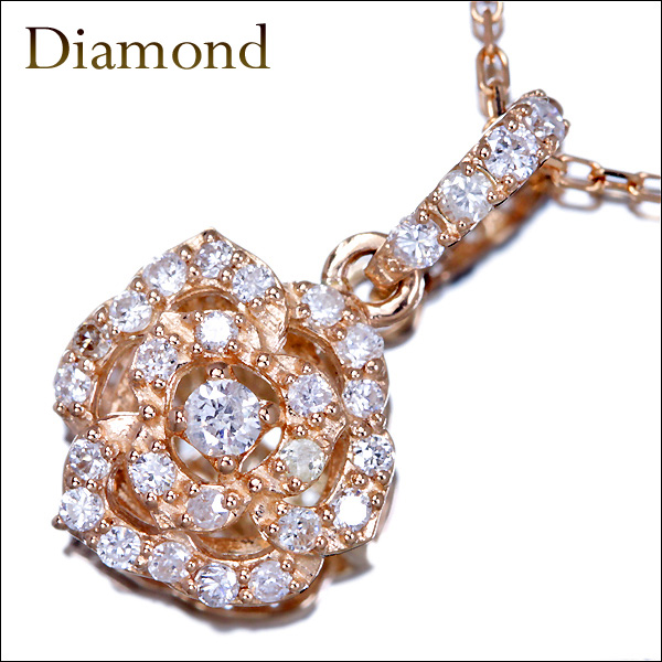 【受注製作 -お客様のご注文で製作いたします-】ダイヤモンドネックレス ピンクゴールド ローズモチーフ