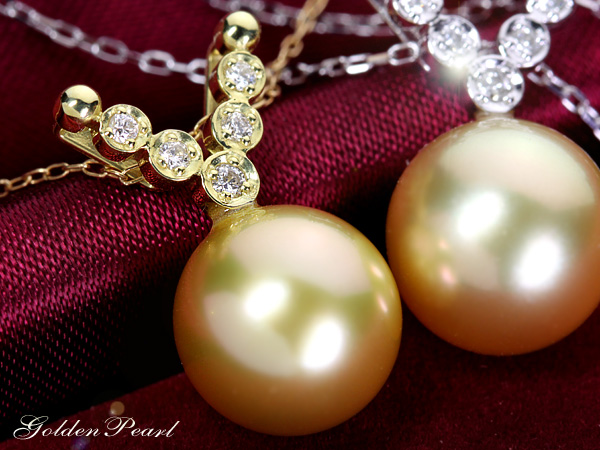 |  | | ゴールデンパールに突き刺さるダイヤモンドのV シンプルながらインパクトのあるデザインのネックレスです。