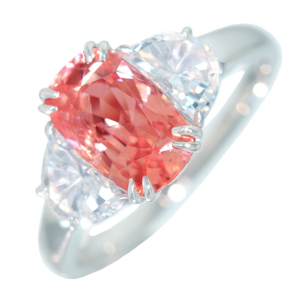 《100年引き継がれるジュエリーを- ハンドメイドジュエリー展》【HANDMADE】PT950 スリランカ産 非加熱パパラチャサファイア 2.54ct ハーフムーンダイヤモンド 0.40ct E VVS1/0.41ct F VS1 リング[GIA]