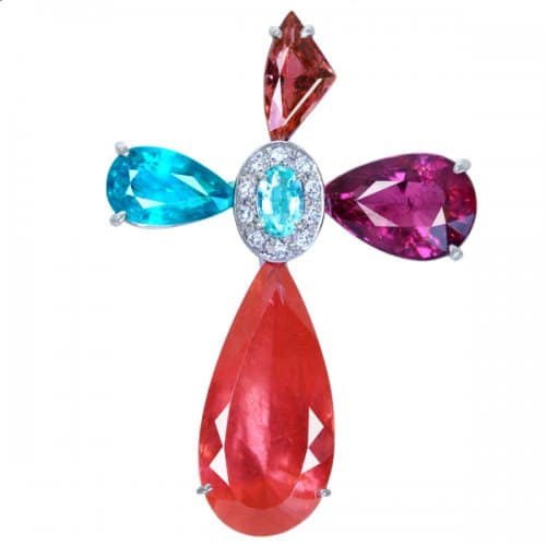 【新着商品】PT900 ロードクロサイト 12.62ct パライバトルマリン 0.34ct サファイア 1.82ct トルマリン 5.36ct アパタイト 2.54ct ダイヤモンド 0.18ct ペンダントトップ マルチカラー