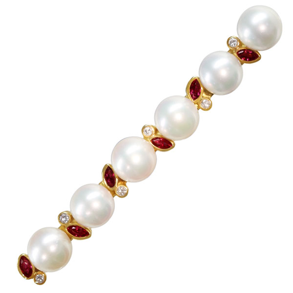 【PRE OWNED】HANDMADE ORDER K18YG パール ルビー 0.74ct ダイヤモンド 0.15ct ペンダントトップ