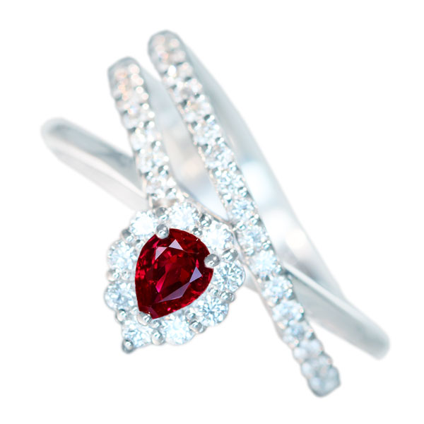 【代行販売】PT900 非加熱 ピジョンブラッド ルビー ダイヤモンド リング ペアシェイプ 【AIGS】