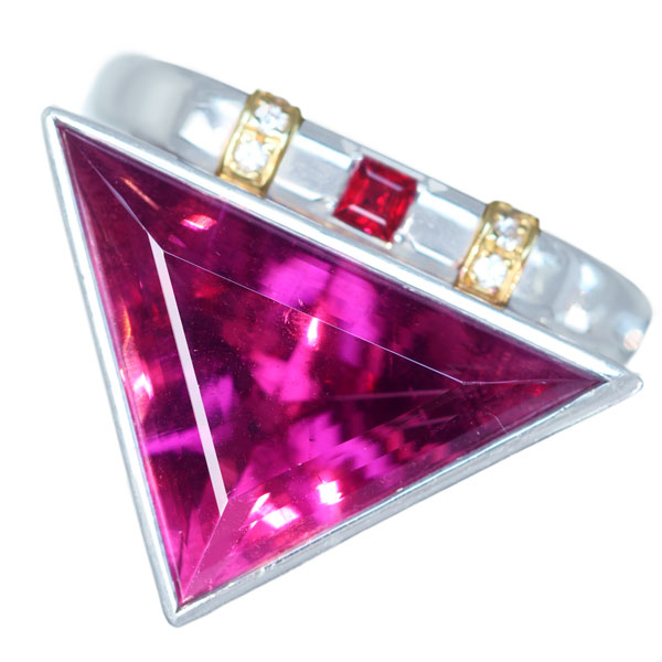 【Made in Japan】PT900/K18YG ピンクトルマリン 7.12ct ルビー ダイヤ リング 竹本出海作