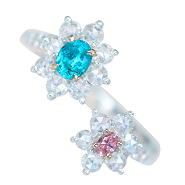 《100年引き継がれるジュエリーを- ハンドメイドジュエリー展》【HANDMADE】PT950 ブラジル産パライバトルマリン 0.36ct ピンクダイヤモンド ダイヤモンド 0.744ct リング