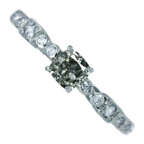 BITTER JEWELRY【HANDMADE】PT950 天然グレーダイヤモンド 0.36ct FANCY BROWNISH GREENISH YELLOW VS-2 ダイヤモンド 0.104ct リング[CGL]