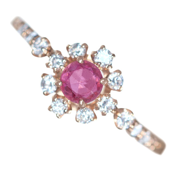 【代行販売】K18PG パパラチャサファイア 0.19ct ダイヤモンド 0.21ct リング フラワー[鑑別書付]