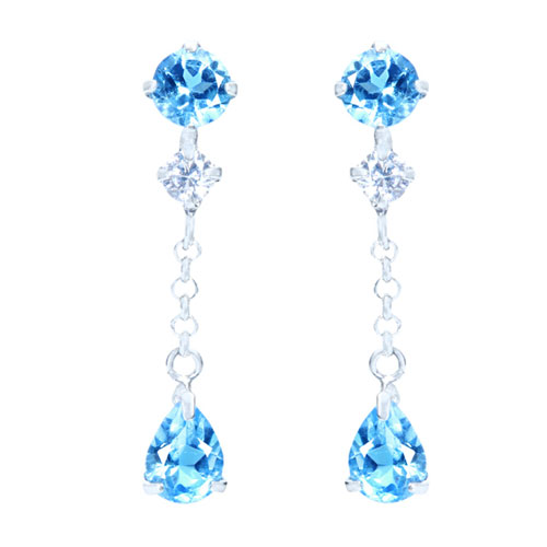 K10WG スイスブルートパーズ 0.2ct/0.2ct ダイヤモンド スウィングピアス