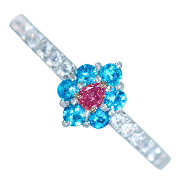 《100年引き継がれるジュエリーを- ハンドメイドジュエリー展》【HANDMADE】PT950/K18PG ピンクダイヤモンド FANCY INTENSE PURPLISH PINK ブラジル産パライバトルマリン 0.18ct ダイヤモンド 0.178ct リング[中央宝石研究所]