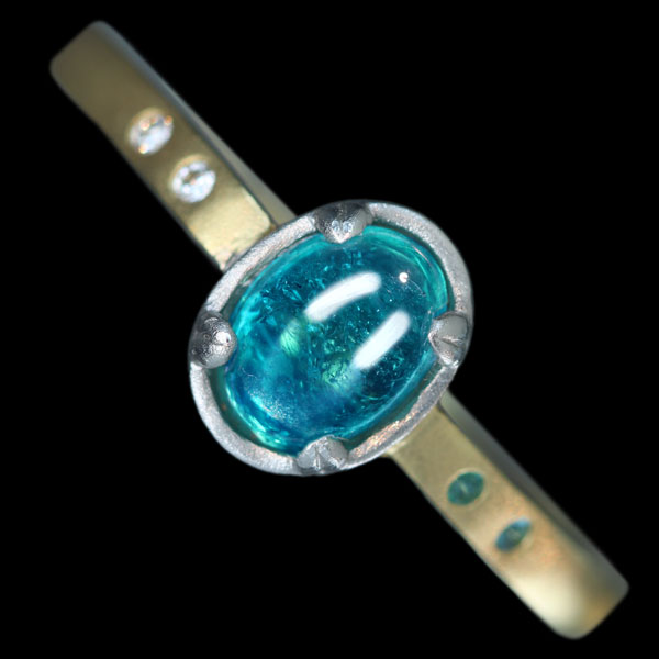 【代行販売】K18YG/PT900 パライバトルマリン 0.78ct ダイヤモンド リング カボション