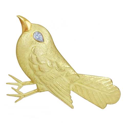【代行販売】K18YG/PT ダイヤモンド 0.06ct ブローチ 鳥モチーフ
