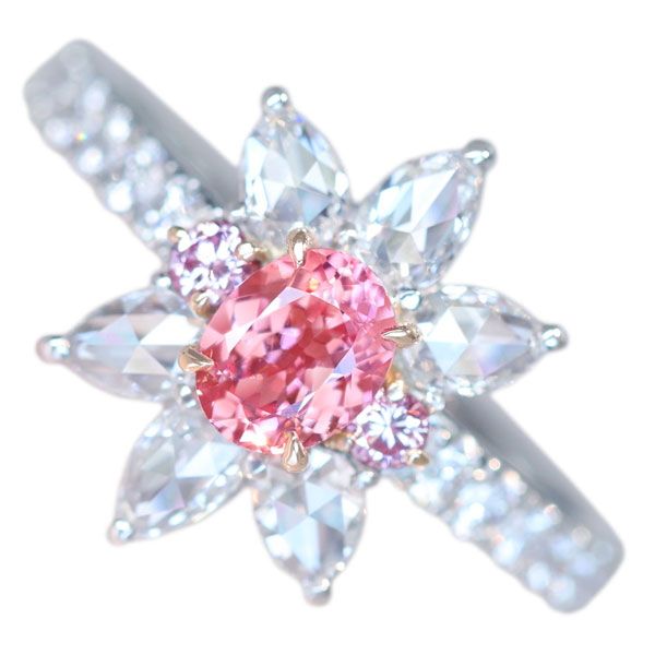 限定価格!《100年引き継がれるジュエリーを- ハンドメイドジュエリー展》【HANDMADE】PT950 パパラチアサファイア 0.54ct ピンクダイヤモンド 0.074ct ダイヤモンド 0.872ct リング[GIA/中央宝石研究所]