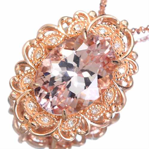 【アンティーク調デザイン】モルガナイトネックレス3.2ct ピンクゴールド ダイヤモンド0.2ct