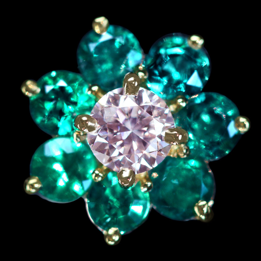 《100年引き継がれるジュエリーを- ハンドメイドジュエリー展》特別価格!【HANDMADE】PT950 パライバトルマリン 0.264ct グリーンダイヤモンド 0.097ct ピンクダイヤモンド 0.052ct ダイヤモンド 0.59ct リング