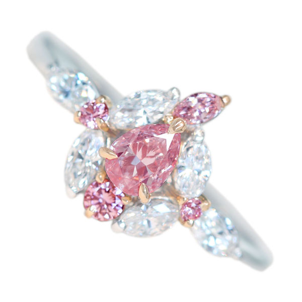 《100年引き継がれるジュエリーを- ハンドメイドジュエリー展》【HANDMADE】Pt950/K18PG ピンクダイヤモンド FANCY ORANGY PINK 0.284ct FANCY INTENSE PURPLISH PINK 0.016ct FANCY PINK 0.033ct FANCY PURPLISH PINK 0.012ct 0.053ct ダイヤモンド 0.408ct リング[中央宝石研究所/DGL]