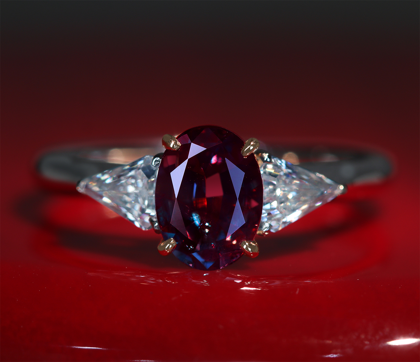 このアレキサンドライトをまさに宝石の王様だと讃えたデザインです。